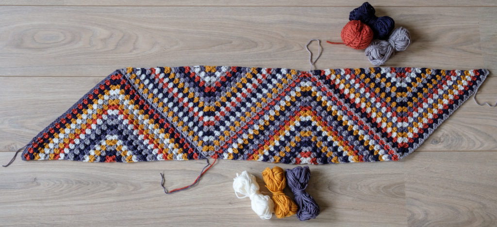You see, I’ve seen a lot of people making a shawl called #rechtedriehoeksjaal, designed by Dutch girl Sarah. You can find her on Instagram as @it.is.a.sarah. Her shawl design is based on the good old granny square. Instead of making a square though, she made triangles which she joined to become a shawl. A simple idea with great impact!